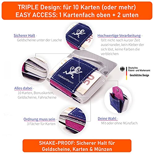 MakakaOnTheRun Premium Portafoglio Sottile & portafoglio con tasca moneta mini per donne degli uomini piccola borsa, titolare della carta minimalista cuoio di grano superiore