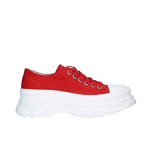 Makaria Sneakers Donna Suola rialzata in Tela Rossa (Numeric_36)