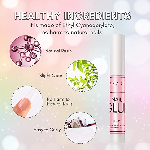 4 pezzi di colla per unghie: ad asciugatura rapida, ad adesione rapida, buona adesione, può durare 14-30 giorni. Ideale per incollare su unghie finte, scheggiate e piccole decorazioni per unghie.