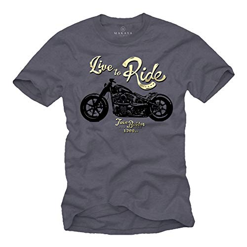 MAKAYA Live TO Ride - Maglietta Biker Uomo - Abbigliamento Moto - T-Shirt Custom Davidsons Evolution Grigio Blu XXXL