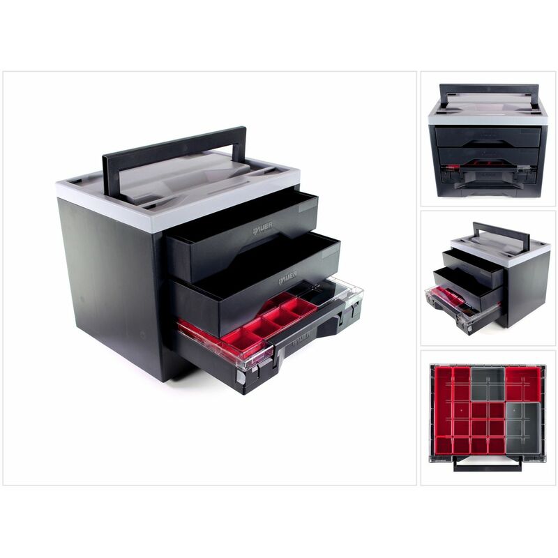 Dotazione: - 1x Makbox Rack cassetto custodia - 2x Cassetti Rack - 1x Cassetto per assortimento (con 11x scomparti interni) Descrizione prodotto: La cassettiera Makbox Rack porta ordine nell'officina. I due cassetti possono essere equipaggiati a piacere con, ad esempio, lame per seghe circolari. La scatola di assortimento è la scatola di smistamento ideale per le piccole parti. Il coperchio trasparente permette di guardare all'interno in qualsiasi momento senza dover aprire la custodia. A causa delle scatole interne appoggiate al coperchio, non è possibile che le piccole parti cadano quando il coperchio è chiuso. Una disposizione molto individuale delle scatole interne non è un problema grazie al concetto ben studiato. La lavorazione è di altissima qualità, la maniglia di trasporto è robusta e può essere facilmente afferrata anche con i guanti da lavoro. La Makbox è caratterizzata da un'eccellente qualità di lavorazione. La chiusura a baionetta brevettata della Makbox permette un