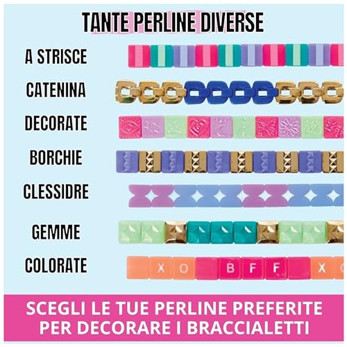 CREA E RICREA 10 BRACCIALETTI: crea e ricrea braccialetti speciali, sostituendo facilmente le perline per tanti stili diversi da abbinare ai tuoi outfit. Non sono richiesti nodi, fermagli o pezzi da tagliare: basta inserire e rimuovere le perline per divertirsi senza difficoltà