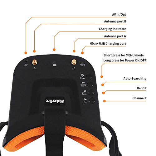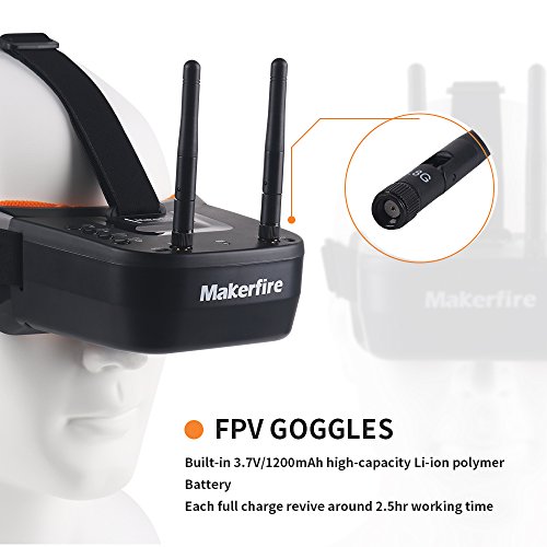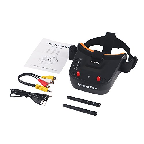 MakerStack 5.8Ghz Mini FPV Goggles Occhiali da 3 Pollici 40CH FPV Video Headset con Doppia Antenna RP-SMA e Borsa da 1200 mAh incorporata per FPV Racing Drone Quadcopter