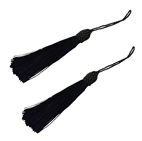 Makhry 20pcs 15.5cm / 6 Pollici Lacci del Segnalibro Filo di Seta Setosa con 2-pollice Cavo ad Anello e Piccolo Nodo Cinese Per Creazione di Gioielli, Souvenir, Segnalibri (Nero)