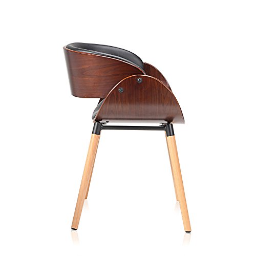 Makika Sedia Retro Vintage Design Sgabello Moderno Stile Imbottita Ecopelle Legno Massello Casa Ufficio - Belle in Nero/Marrone