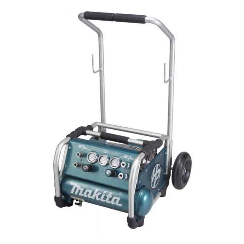 Il compressore d'aria ad alta pressione Makita AC310H da 1800W ha una potenza di 2,5HP con una pressione regolabile da 9 a 26bar.Dotato di due uscite per utensili ad alta pressione e due uscite per utensili a pressione standard.I maniglioni ne semplificano il trasporto e la struttura tubolare garantisce un ottimo livello di protezione della macchina. Il serbatoio dell'aria risulta molto compatto rispetto ad un compressore standard ad alta pressione con serbatoio 6,2l con una portata di 90l/min. Makita AC310H include il carrello per il trasporto. Caratteristiche tecniche Potenza Assorbita 1800 W Velocità a vuoto 1420 min⁻¹ Prestazione 90 (6 bar) L/min Uscita massina pressione 26 bar Uscita pressione normale 9 bar Pressione max 28 bar Capacità di serbatoio dell'aria 6,2 L Interruttore di sicurezza termica Livello pressione sonora 90 dB(A) Incertezza del rumore (fattore K) 3 dB(A) Peso senza cavo (Procedura EPTA 01/2003) 36 kg Dimensioni prodotto 476 x 507 x 375 mm Accessori in Dotazione