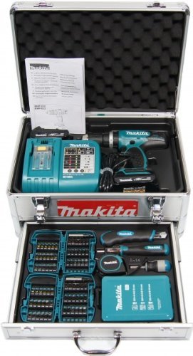 Makita BHP453RHEX5 - Avvitatore a percussione a batteria, in valigetta di alluminio, incl. set 96 accessori, 2 batterie e caricatore