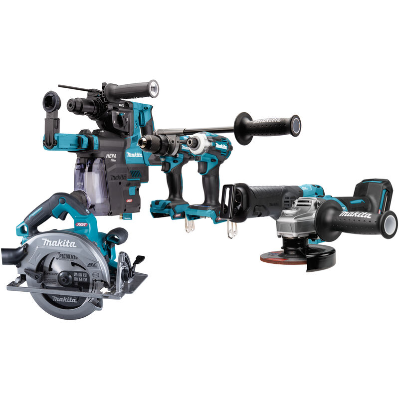 Il kit Makita DK0128G601 è il kit perfetto per l'edilizia. Questo set comprende sei utensili selezionati dal top della gamma 40V in modo da poter soddisfare tutte le esigenze e coprire anche i lavori più gravosi. Composizione kit: 1x avvitatore DF001G 1x avvitatore ad impulsi TD001G 1x smerigliatrice angolare GA005G 1x sega circolare HS003G 1x tassellatore con aspiratore HR002G 1x seghetto diritto JR001G 2x batterie BL4040 40Vmax 4Ah. 1x caricabatterie rapido DC40RA