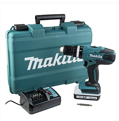 Makita HP457DW Perceuse visseuse à Percussion + 1 batteria agli ioni di litio 18V 1,5Ah + caricatore + Coffret