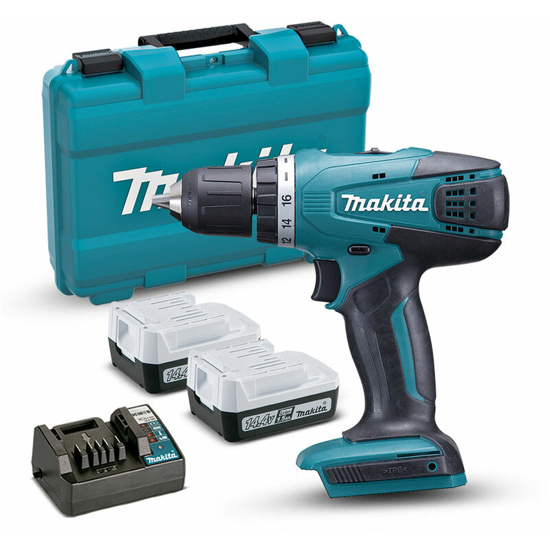 Trapano avvitatore al litio 14,4v df347d001 makita. trapano avvitatore al litio 14,4v, mandrino autoserrante. 16 posizioni decoppia de + 1 diretta. 0 -1.400 giri/min. 30nm. velocità variabile. freno elettrico. 2 velocità meccaniche. 16 posizioni de frizione. mandrino autobloccante. peso 1,4 kg. 198x83x235 mm (altezza/larghezza/profondità).