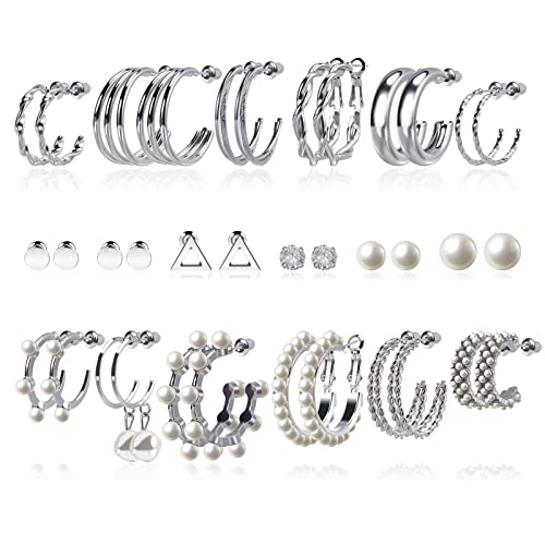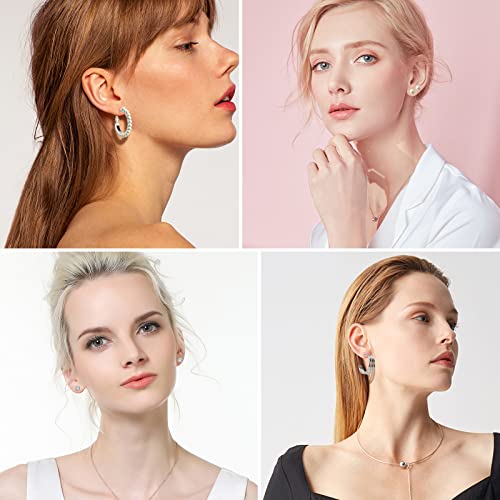 Makone 18 Paia Set Orecchini Donna, Mezzo Cerchio Argento Multipli Orecchini Cerchio Argento Piccoli, Orecchini Perle, Orecchini Punto Luce, Anallergici Orecchini Argento per i Regali di Gioielli
