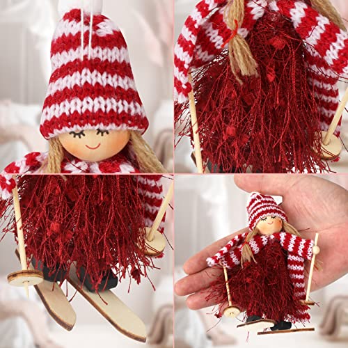 Ciondolo angelo: unico e carino con dettagli squisiti. ♥ Set decorativo originale Makone - (4 pezzi): dimensioni: 10,5 cm * 5,5 cm, vestito con frange + cappello e sciarpa lavorati a maglia + bambola da sci in legno con slitta. Colore: rosso, verde, bianco, grigio.