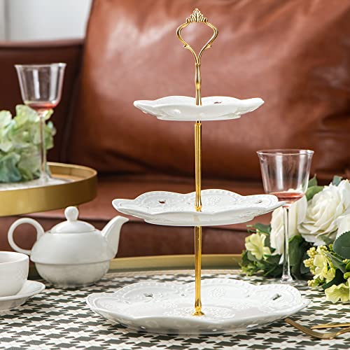 Malacasa - Etagere serie Sweet.Time, 15,20 / 20,30 / 26, 60 cm circa, alzatina per dolci, ripiano per dessert, stand per cupcake, in porcellana, torte a 3 piani, muffin, frutta, per feste, compleanni, matrimoni, Natale. bianco