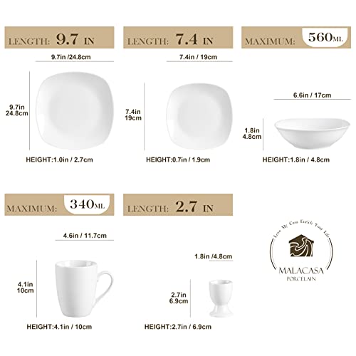 MALACASA, Serie Elisa, Servizio Tavola Crema Piatti Piani 40 Pezzi In Porcellana Bianca Con 8 Piatti Piani, 8 Ciotole, 8 Piatti Dessert e 8 Tazze Alte, 8 Portauova in Porcellana per per 8 Persone