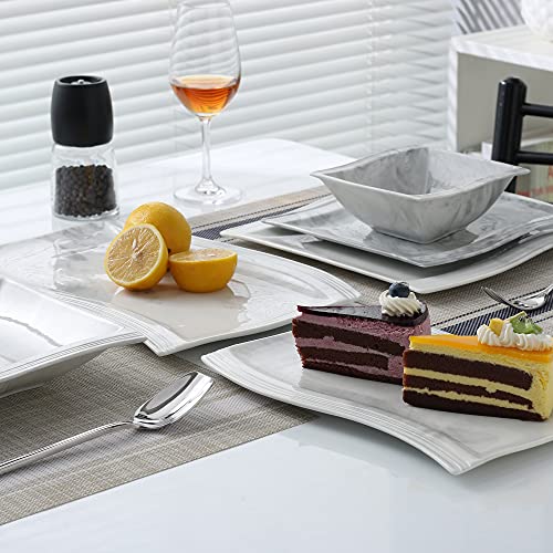 MALACASA, Serie Flora, Servizio da Piatti in Porcellana Grigia Set 4 Pezzi con 2 Piatti Rettangolari da 11" e 2 Piatti Rettangolari da 13,2" per Servire 2 persone