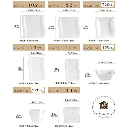 SERVIZIO PIATTI INCLEDERE - MALACASA 56 pezzi set piatti 12 persone moderni, con 560ml piatti fondi, ø 22cm piatti dessert e ø 27cm piatti piani(12 pezzi ciascuno). 335ml ciotola 220ml tazza, e ø 14cm piattini(6 pezzi ciascuno). 11" e 13.25" piatti rettangolare.