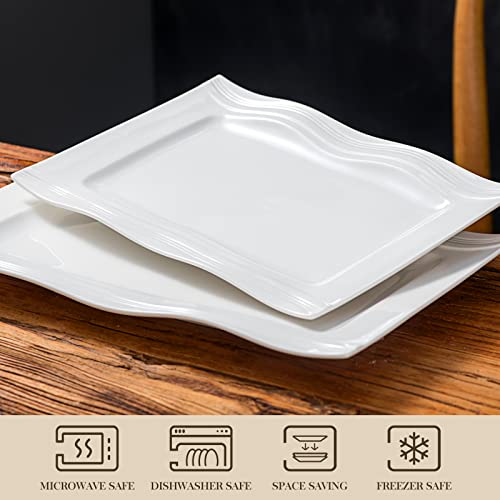 MALACASA, Serie Mario, 2 Set di Piatti piani/Piatti rettangolari di 13,25‘'&11'' /Piatti per torta/Piatti da Dessert, Piatti da portata in porcellana