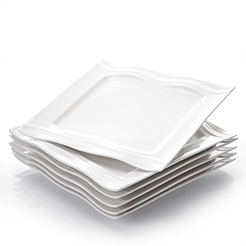 MALACASA, Serie Mario, Servizio di Piatti in Porcellana Set 12 Pezzi Piatti da Dessert Avorio Bianco