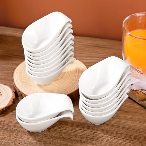 MALACASA, Serie Ramekin.Dish, 16 Pezzi di Ciotoline per aperitivo/Per antipasto/Per i dolci/Per salse/Per merenda, in ceramica bianca, Dimensione: 3.75/9.5 * 6.5 * 3.5 cm