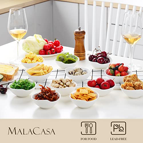 MALACASA, Serie Ramekin.Dish, 12 Pezzi di Ciotoline per aperitivo/Per antipasto/Per dolci/Per merenda/Per salse, in ceramica/porcellana bianca, Dimensione: 11 x 10 x 4 cm
