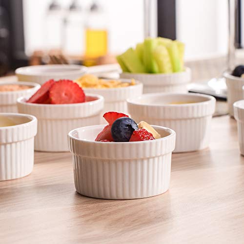 ►MULTI-UTILIZZO: Il set ramekin, diametro 3,5 pollici, è perfetto per soufflé, creme brulee, marmellate, salse, zuppa di cipolle francese, crumble di mirtilli, cupcake o qualsiasi altro numero di ricette. Permette di mettere queste creme brulee in forno con una presa più comoda, non preoccuparti di scivolare. E il set ramekin è fantastico quando vuoi usarli per preparare gli ingredienti.