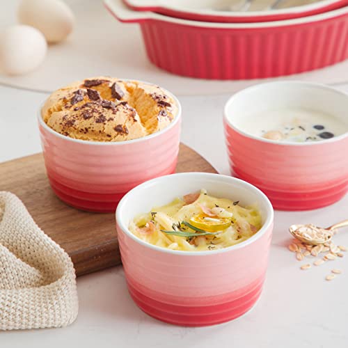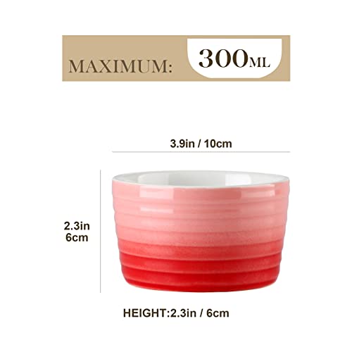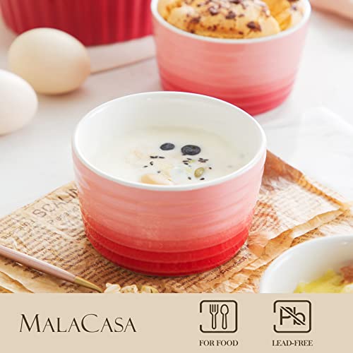 MALACASA, Serie RAMEKIN, 6 pezzi di ramequin rotondo, piccola ciotola da forno rossa, [10 x 10 x 6 cm 300 ml], rosso sfumato circolare