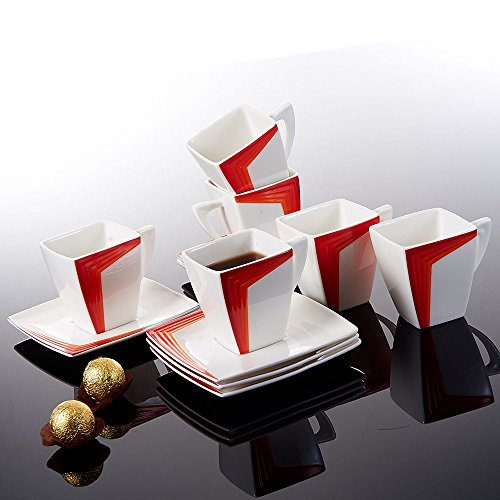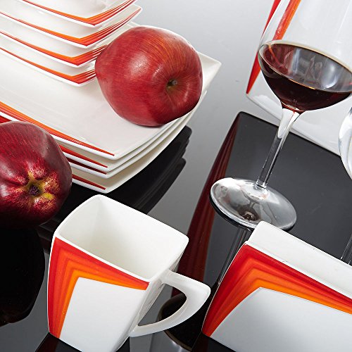 Malacasa, Serie Rebeca, Servizio di Porcellana da Tavola 40 Pezzi con 6 Tazze di x 6 Piattini x 6 Piatti x Soup 6 Piatti da Piatto x 1 Piatto x 1 Piatto Rettangolare 6 Vassoio da 1 x Vassoio 1 Vassoio da 1 x Zucchero 1 x Basamento del Tovagliolo 1 x Brocca di Latte e 2 x set di Shaker del Sale & del Pepe Arancia