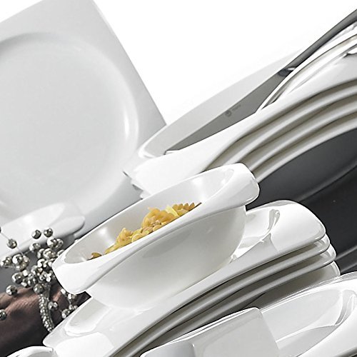 Malacasa,serie Rosana 28 pezzi Set di piatti in porcellana con 6 tazze, 6 piatti per il dolce, 6 piatti fondi, 6 piatti piani, saliera e pepiera e 2 piatti rettangolari