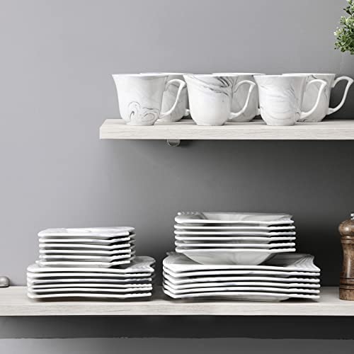 MALACASA Servizio di Piatti in Porcellana, Marmo Grigio 60 Pezzi con 12 Piatti da Dessert/ 12 Tazze di caffè/ 12 Piattini/ 12 Piatti Fondi/ 12 Piatti Piani per 12 Persone, Serie AMPARO