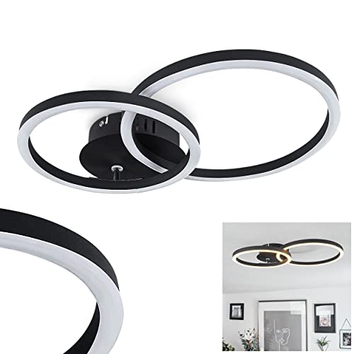 Malanje, lampada da soffitto a LED moderna in metallo nero/bianco, con 2 anelli, (1 regolabile), 24 Watt, 1300 lumen, colore della luce: 3000 Kelvin (bianco caldo)
