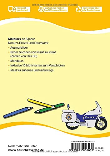 Malblock - Notarzt, Polizei und Feuerwehr