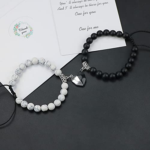 ★DESIGN CON FIBBIA MAGNETE: Braccialetti con perline di pietra con ciondoli magnetici, si attraggono quando i braccialetti sono vicini l'uno all'altro, adatti a coppie, amanti, amici e familiari da indossare, dì loro non importa quanto distanti, il braccialetto si manterrà l'uno dell'altro cuori uniti per sempre, un dolce regalo Lascia che i sentimenti si riscaldino.