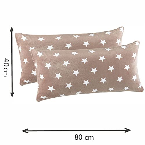 MALIKA Nicky-Teddy Cashmere Touch Coral - Federa in pile per cuscino da divano, Sterne-taupe, 2x 40x80 cm