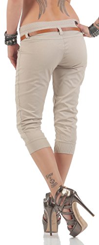Malito Capri-Pantaloni con Cintura di Similpelle Pantaloni 5398 Donna (L, Beige)