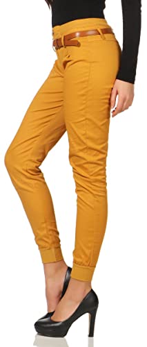 Malito Chino-Pantaloni con Cintura di Similpelle Pantaloni Pump Tubo Casuale Base 5396 Donna (XL, Giallo)