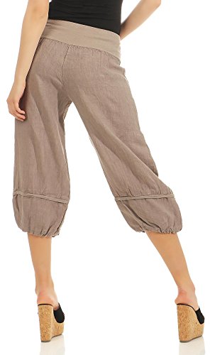 Malito Donna Lino Pantaloni Tempo Libero Pantaloni Bloomers Basic Plain Colors 1575 (Fango, L)