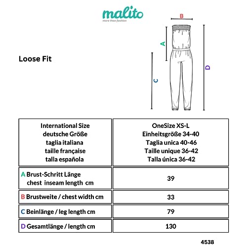Malito Jumpsuit Catsuit Playsuit Romper Abito Lungo 4538 Donna Taglia Unica (oliva)