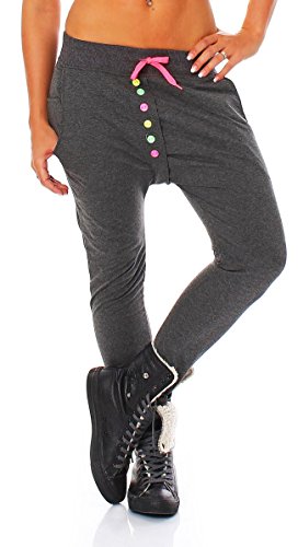 Malito - Pantaloni da jogging con bottoni colorati | Pantaloni da sport a Tinta Unita | adatti per ballare | 2659 grigio scuro S