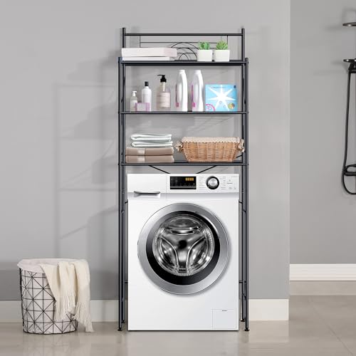 MALLBOO Ripiano superiore per lavatrice con 3 Ripiani,Scaffale da Bagno Salvaspazio,Assemblaggio Facile(Black)
