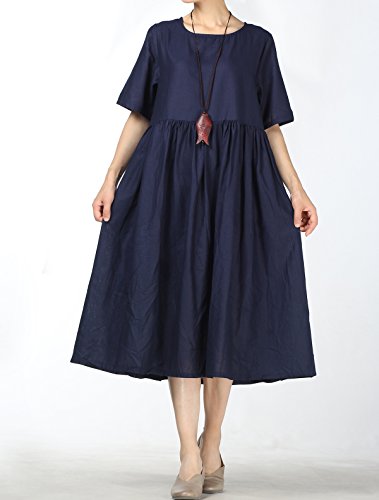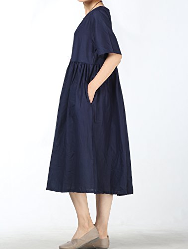 Mallimoda - Abito Estivo da Donna, in Lino, Largo, Chic, Casual, a Maniche Corte Marina Militare XXL