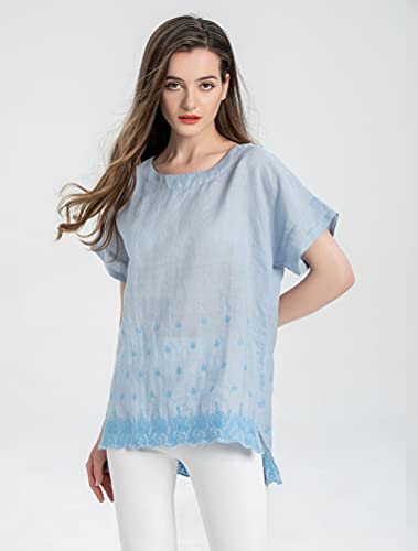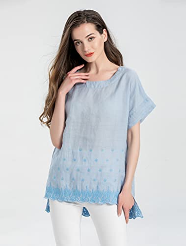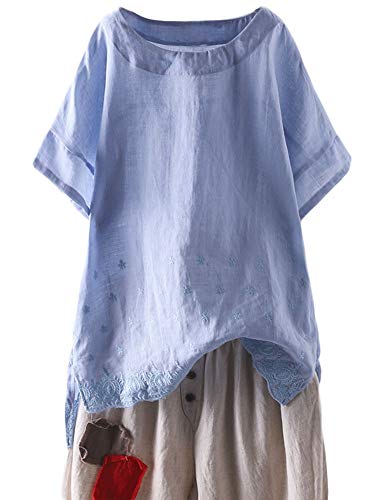 Mallimoda Donna Tunic Top Girocollo Manica Corta Camicetta Estate Blusa T-Shirt Blu L