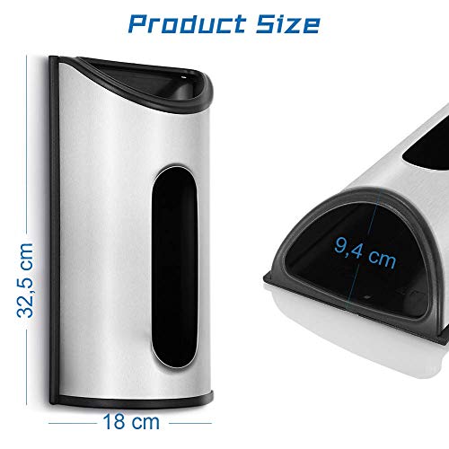 Malmo - Dispenser per sacchetti di plastica in acciaio inox con supporto a parete, porta sacchetti di plastica per la cucina, colore: argento