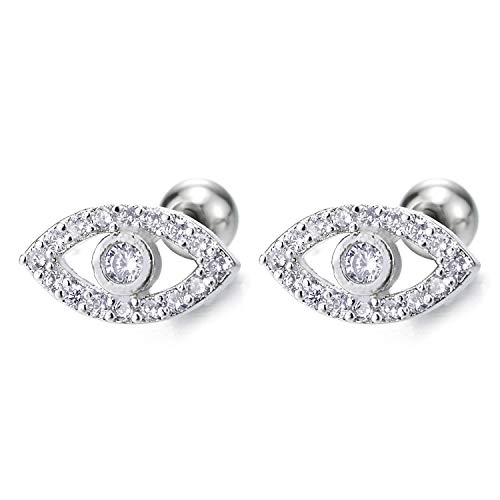 Malocchio Protezione Ovale Orecchini da Donna, Orecchini a Lobo con Pavé Zirconi, Acciaio Inossidabile, Riavvitare