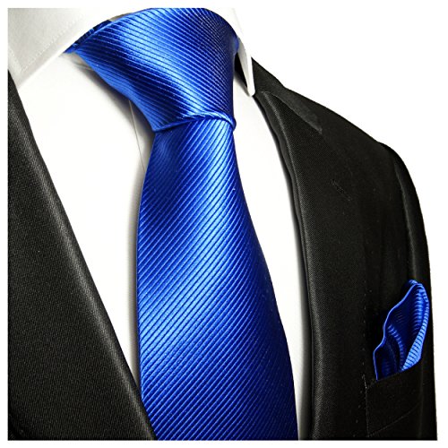 Paul Malone Cravatta di seta + fazzoletto blu uni