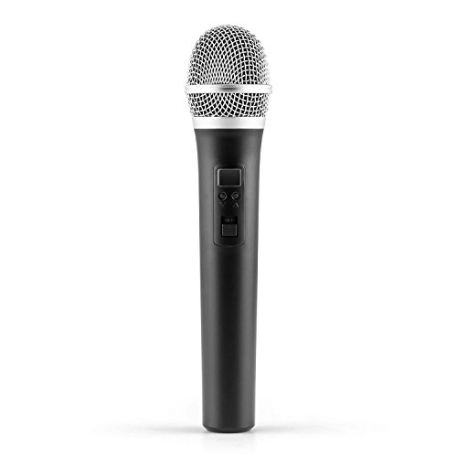 Set con radiomicrofono 2 canali UHF con due microfoni a mano e raggio d'azione massimo di 50 m | Radiotrasmettitore tascabile compatto con clip a cintura, display LCD e volume regolabile | Ottimizzato per il canto e per la voce con circuito di protezione da scoppiettii indesiderati