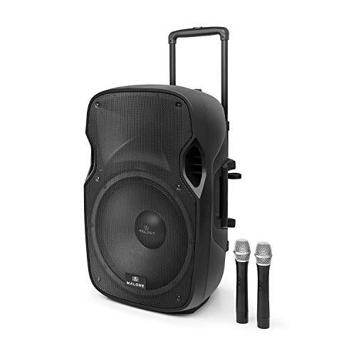 Malone PP-2915BTR - Altoparlante PA Attivo, Sistema PA, Cassa PA, Potenza di Picco 900W, Porta USB/SD/MMC, 2x Microfono Wireless VHF, Colore Nero