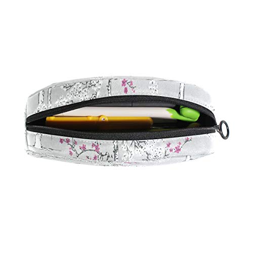 MALPLENA - Astuccio portapenne in pelle con motivo a foglie di uccellino, colore: grigio e viola