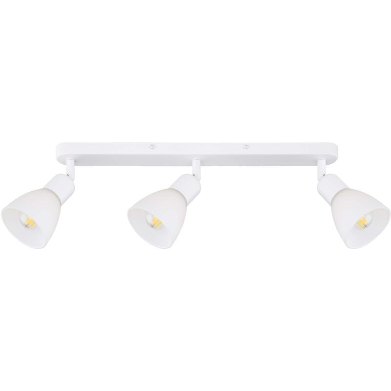 Dimensioni: 8 x 45x 17 cm Materiale predominante: Metallo Tipologia portalampada: E14 Numero sorgenti luminose (lampadine): 3 Potenza lampadina: max 40w Colore: bianco