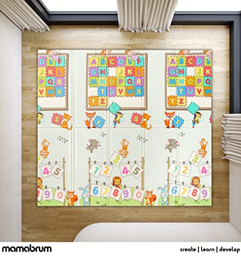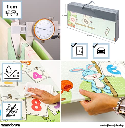 Mamabrum Tappetino da gioco per bambini, ecologico e atossico, tappetino in schiuma ispessita, impermeabile, antiscivolo, portatile, cavalli e alfabeto