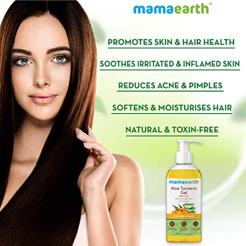 Mamaearth Aloe Vera Gel da 100% puro Aloe Vera per viso, della pelle e dei capelli con curcuma e vitamina E (300 ml)